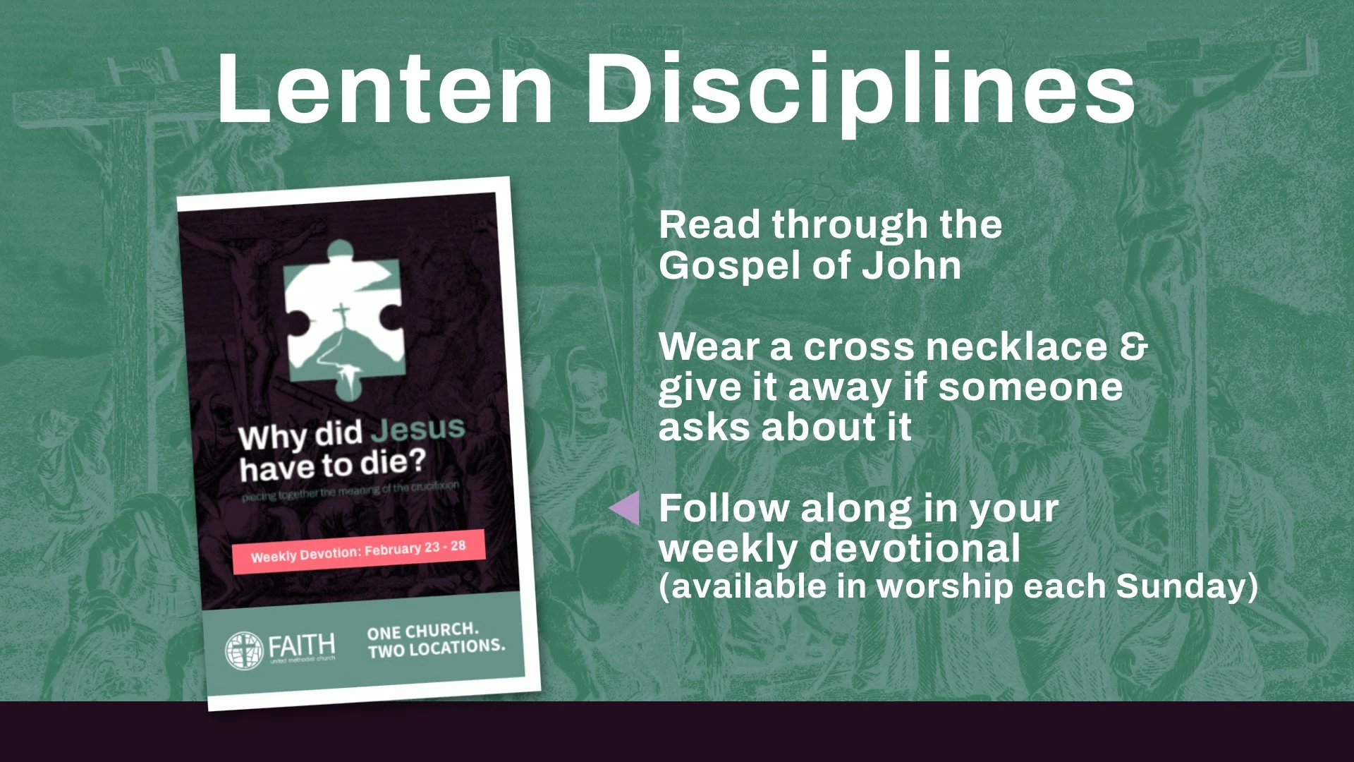 Our theme for Lent this year is Why Did Jesus Have to Die?, which is based on the newest book of the same name from Rev. Adam Hamilton. Below is a theme summary from the book: